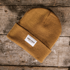 The UGGLY&CO Mustard Yellow Beanie. A yellow cotton ‘fisherman’ beanie with the classic UGGLY&CO design woven on to the front.