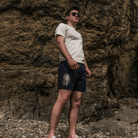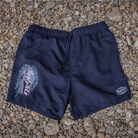 The shorts come in a deep navy blue, reminiscent of the ocean at dusk. Running down the right leg is a striking wave texture in light blue and pink, blending movement and contrast in true surf-inspired fashion. Our Diamond logo is printed boldly within the wave, while a smaller version sits on the left leg — subtle but unmistakable. It’s a colorway that captures sunsets, salt air, and summer nights on the coast.
