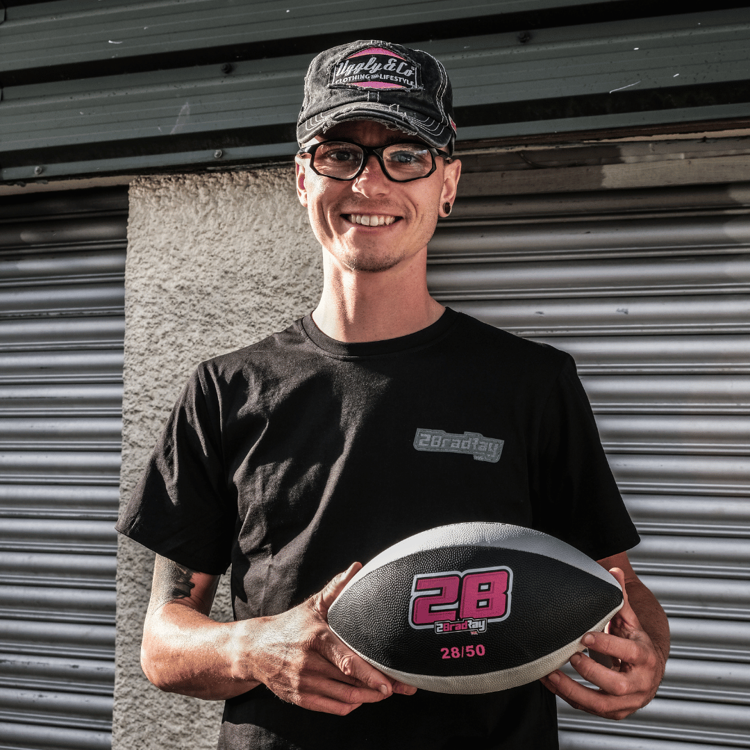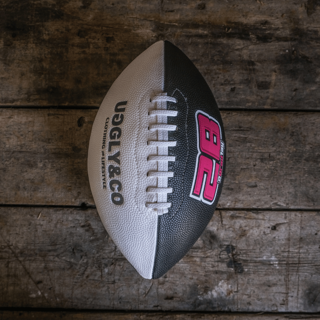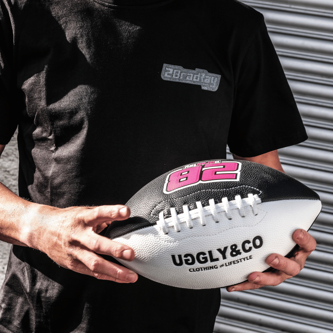 Crafted from real American football fabric for that true-to-touch feel, each ball features the Uggly&Co logo in classic black and white, paired with Brad Ray’s iconic #28 logo in black and pink – a nod to his unmistakable race livery.