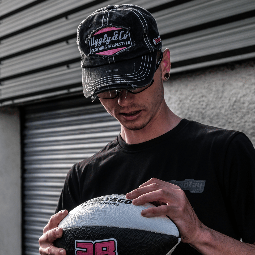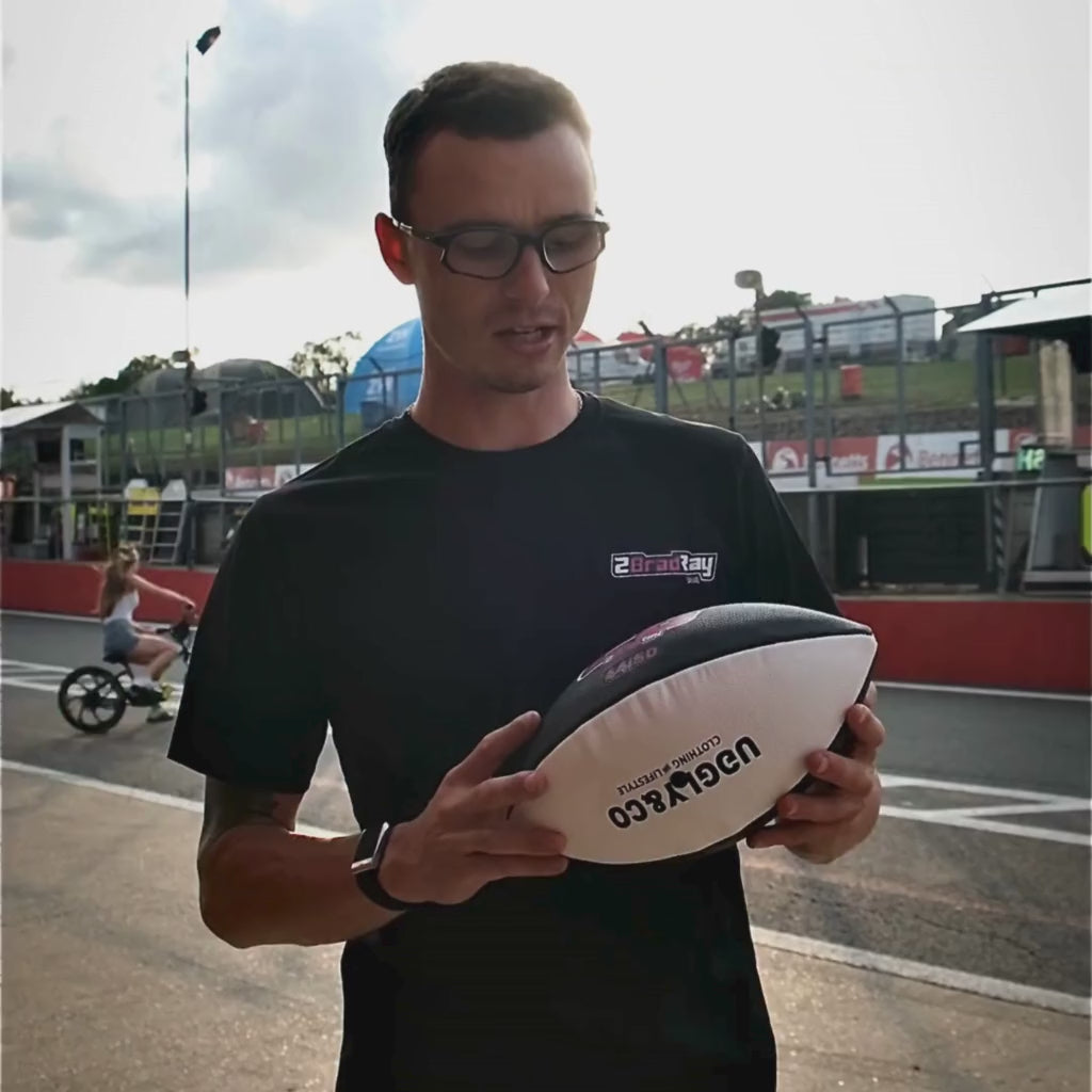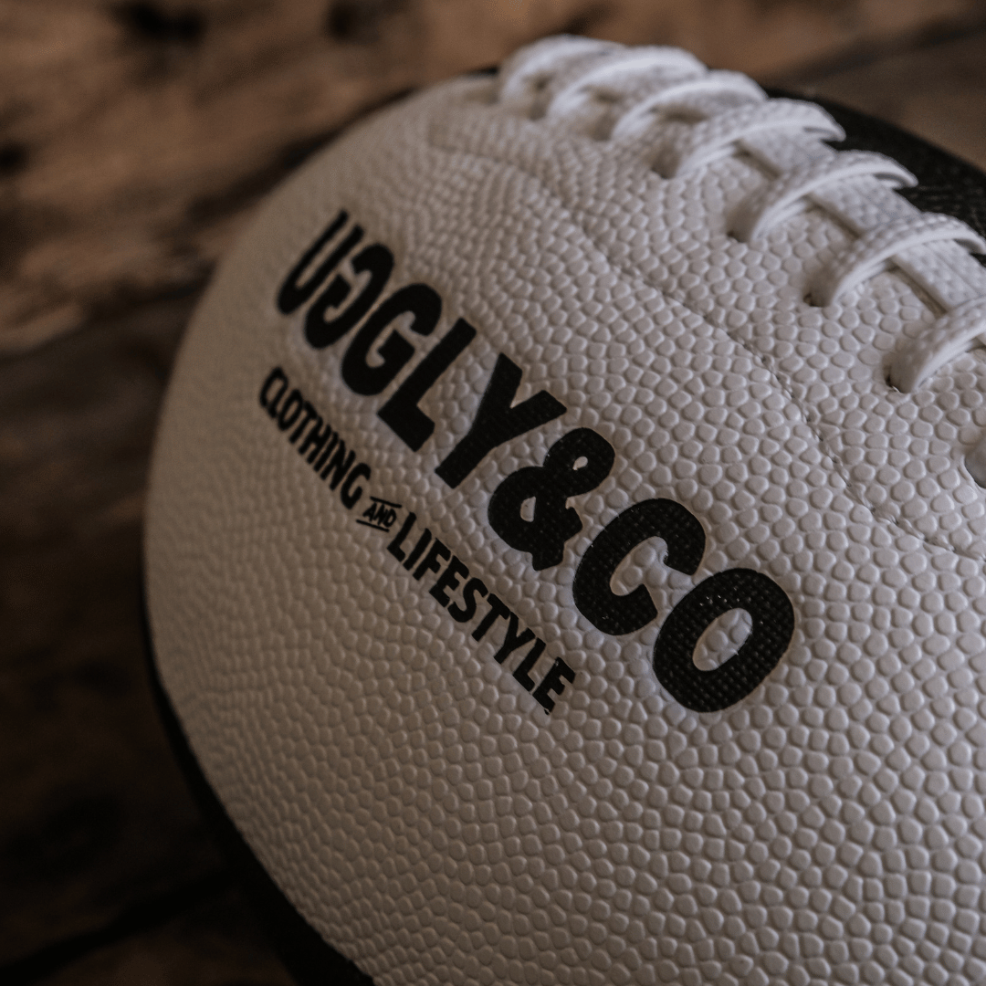 Crafted from real American football fabric for that true-to-touch feel, each ball features the Uggly&Co logo in classic black and white, paired with Brad Ray’s iconic #28 logo in black and pink – a nod to his unmistakable race livery.
