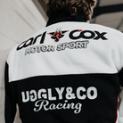 The standout design features timeless black and white hues, adorned with detailed embroidery and badges that ensure this jacket will never go out of style. Show off your passion for motorsport with logos on the arms, back, and front, including the iconic Carl Cox logo and the renowned Uggly&Co Racing emblem, a staple in UK motorcycle racing.