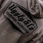 But what really sets this piece apart is the embroidery. The front features our iconic Uggly&Co diamond logo with the wave pattern woven in, but the true centerpiece is on the back — a custom-made lightweight badge stitched directly into the hoodie with fraying edges and thousands of precise stitches forming the wave-filled diamond logo. It’s rugged, refined, and bursting with character.