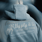 Crafted from our signature heavyweight soft cotton, it offers the perfect balance of comfort and durability, built to withstand everyday wear. The oversized back print showcases the flattrack design in a standout light blue and light yellow colorway, while the front features a smaller rider illustration, paired with the iconic Uggly&Co Motorcycle Clothing logo—a tribute to our passion for two wheels.