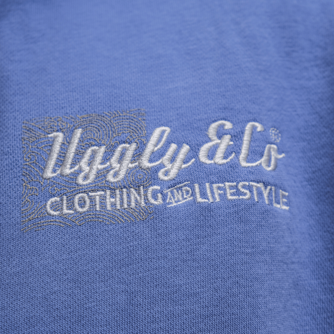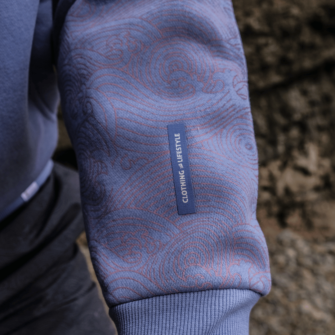 Two custom panels sit on each forearm, featuring our signature wave texture in soft pink — a subtle design detail that adds movement and depth, setting this piece apart. A woven label reading "Clothing & Lifestyle" is stitched into the left arm, bringing a quiet touch of Uggly&Co storytelling.