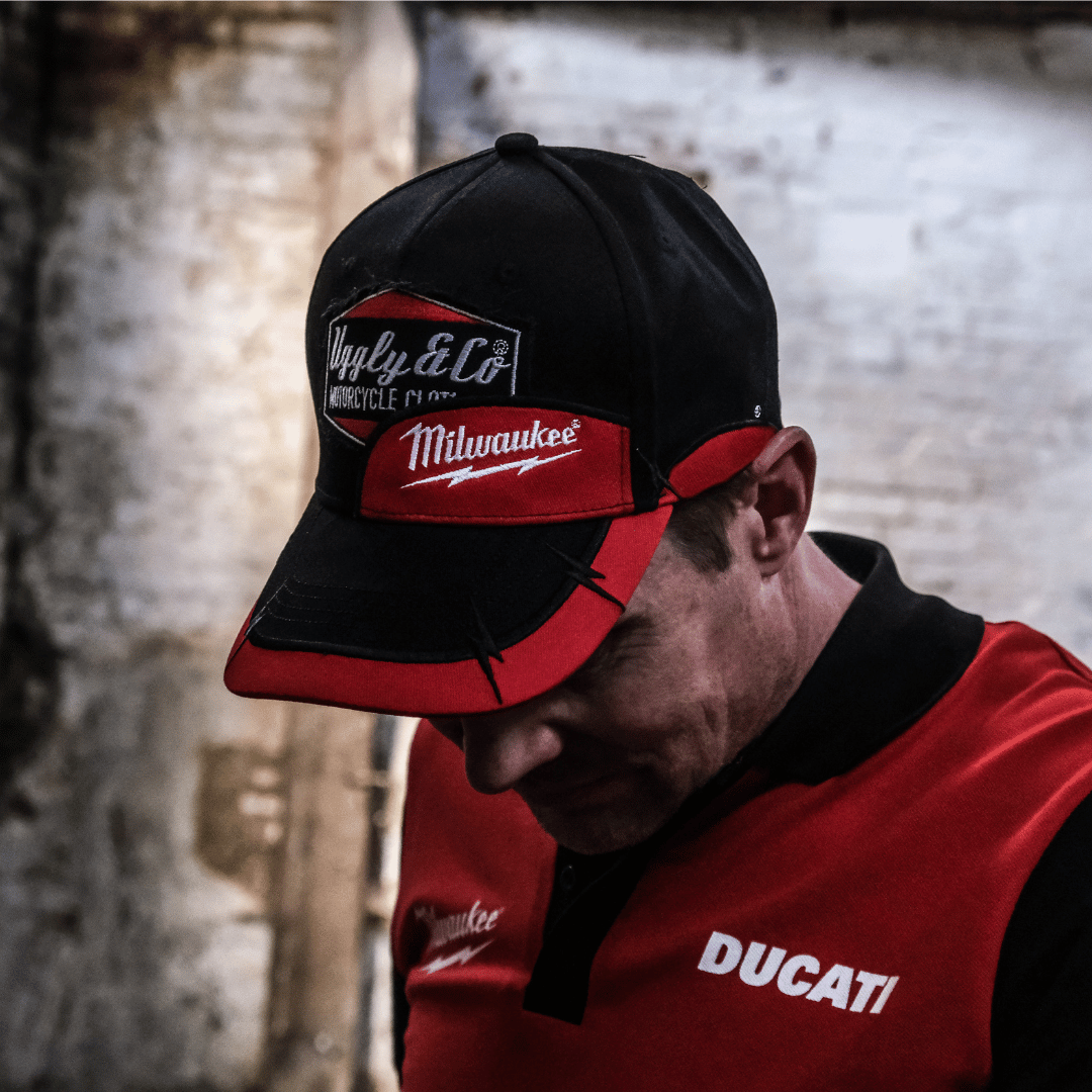Milwaukee Tools® is a powerhouse — the leader in the electric hand tools market, a major name in motorsport sponsorship, and an icon in the world of hard work and innovation. We’ve merged that legacy with our own by bringing together the classic Diamond logo and the unmistakable red and white Milwaukee Tools® logo, both embroidered with precision, clashing yet complementing each other on the front of the cap.