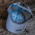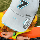 The standout feature of this cap is Davey’s "7" number on the front, highlighted in the light blue, bringing a vibrant pop to the otherwise subtle design. The fabric underneath the peak also showcases the same subtle steel grey. The peak of the cap features light blue accent stitching, with intentional tears revealing subtle pops of blue for added detail.