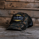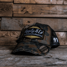 Featuring a classic camo front panel paired with a black mesh back, this cap blends military edge with our signature Diamond identity. The distressed peak and subtle fraying give it that broken-in feel from the first wear, staying true to our heritage-inspired aesthetic.