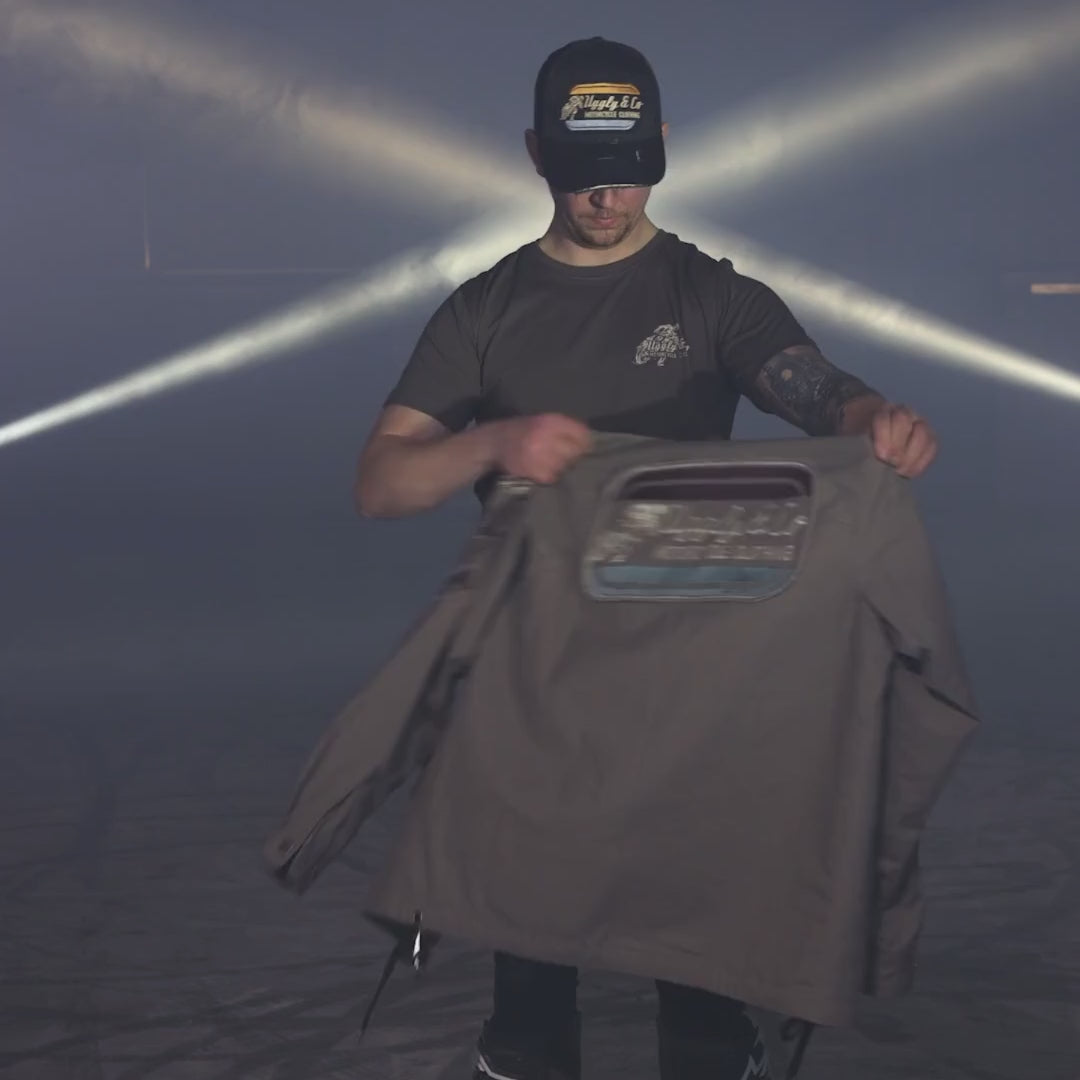 Designed with both style and function in mind, the shacket features a dual zip and button-up closure, both branded with Uggly&Co. Every patch has been stitched on for long-lasting durability, with intentional fraying for a vintage, worn-in feel. A carabiner clip at the back allows you to easily carry your cap while riding or walking, adding an extra layer of practicality.