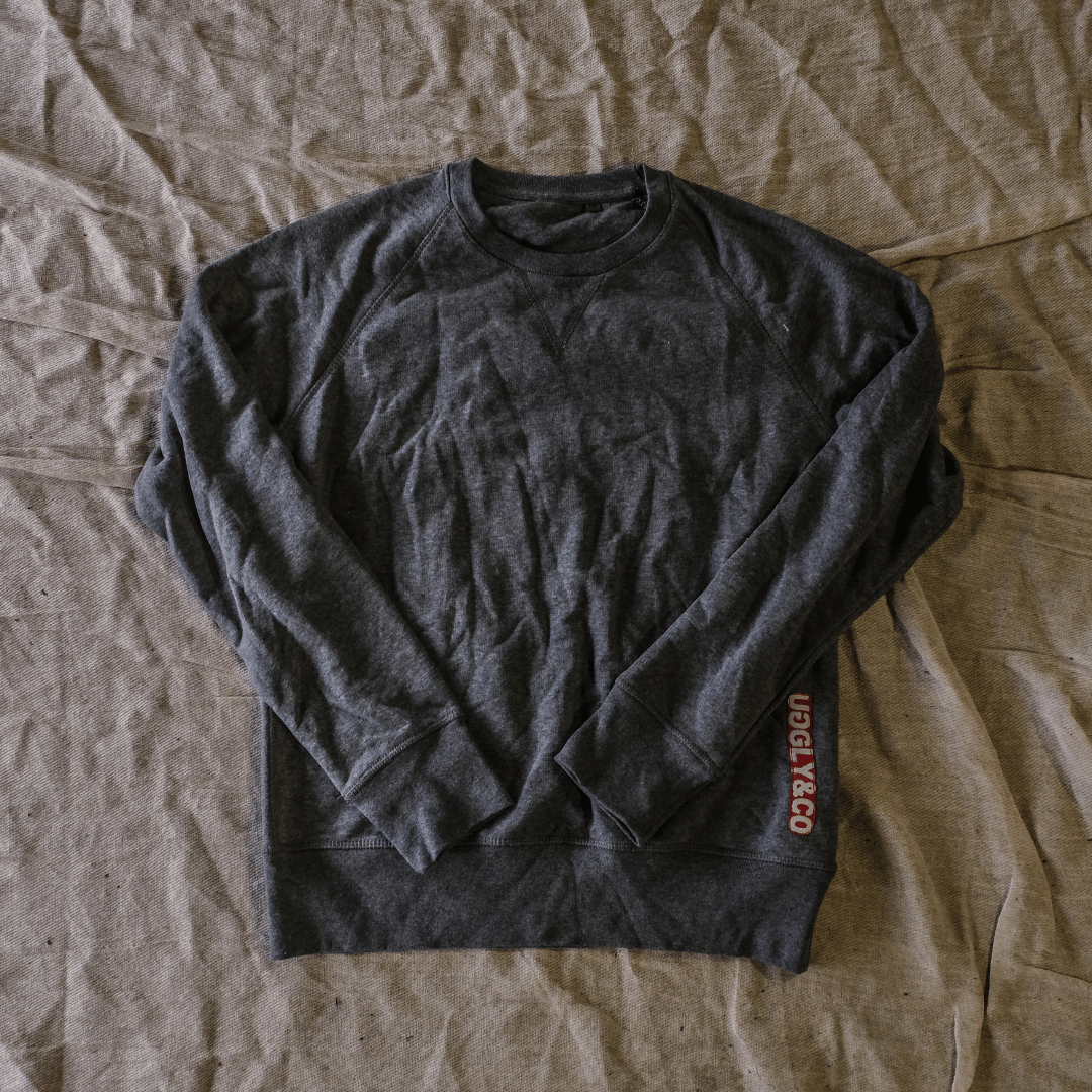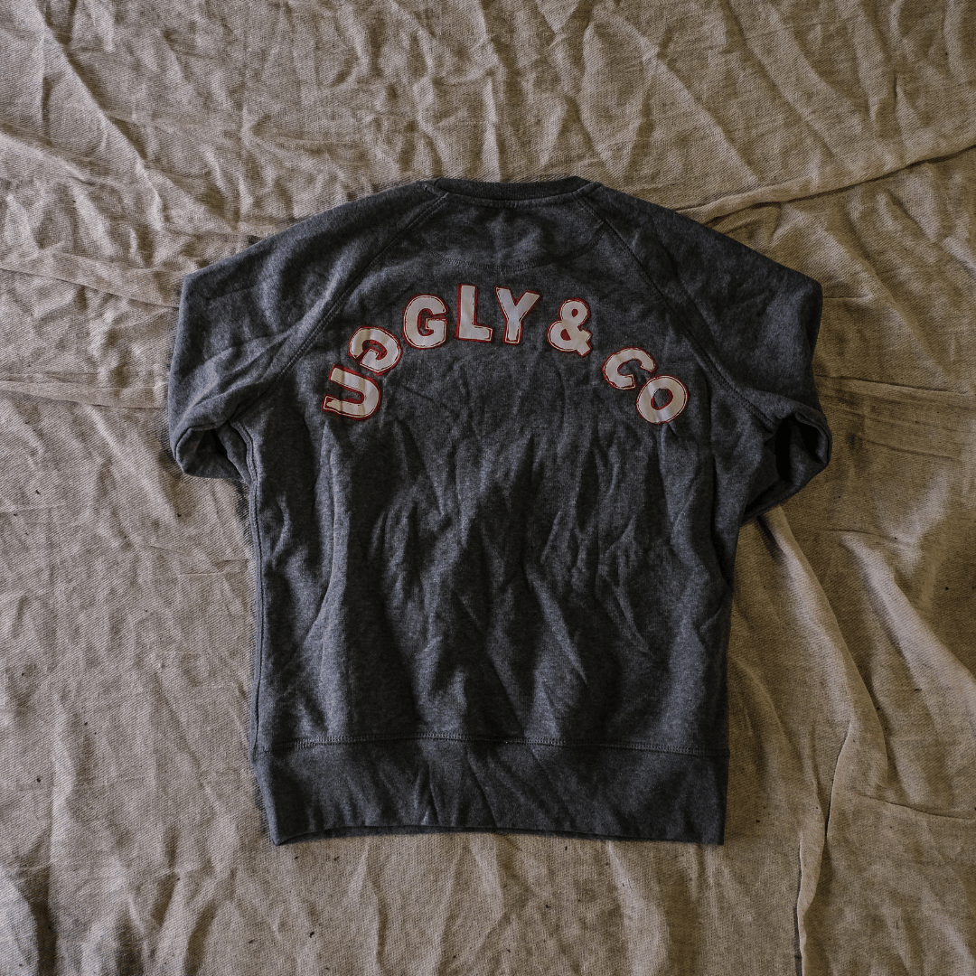 A proper old-school piece from the early Uggly&Co days — this short-sleeve sweat features a bold arched applique logo across the back in red and white. The retro athletic cut gives it a classic garage-meets-varsity feel, making it stand out from anything that ever made it to production.