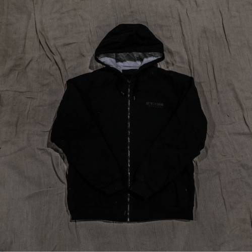 The Black Chore Coat Sample features the Parts & Spares Black Dub logo embroidered in black on both the front and back, giving it a clean, stealthy, workwear-inspired look. As a development piece, it carries slight differences from the final versions, making it a rare, understated one-off from the early sampling stage.