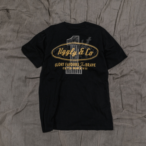 The No.1 Tee Sample comes in a clean black base with a rich gold-yellow print, using the original No.1 bestseller artwork that helped shape one of U&C’s most recognisable designs. This sample carries the same bold, iconic look as the final version but with its own development-stage charm.