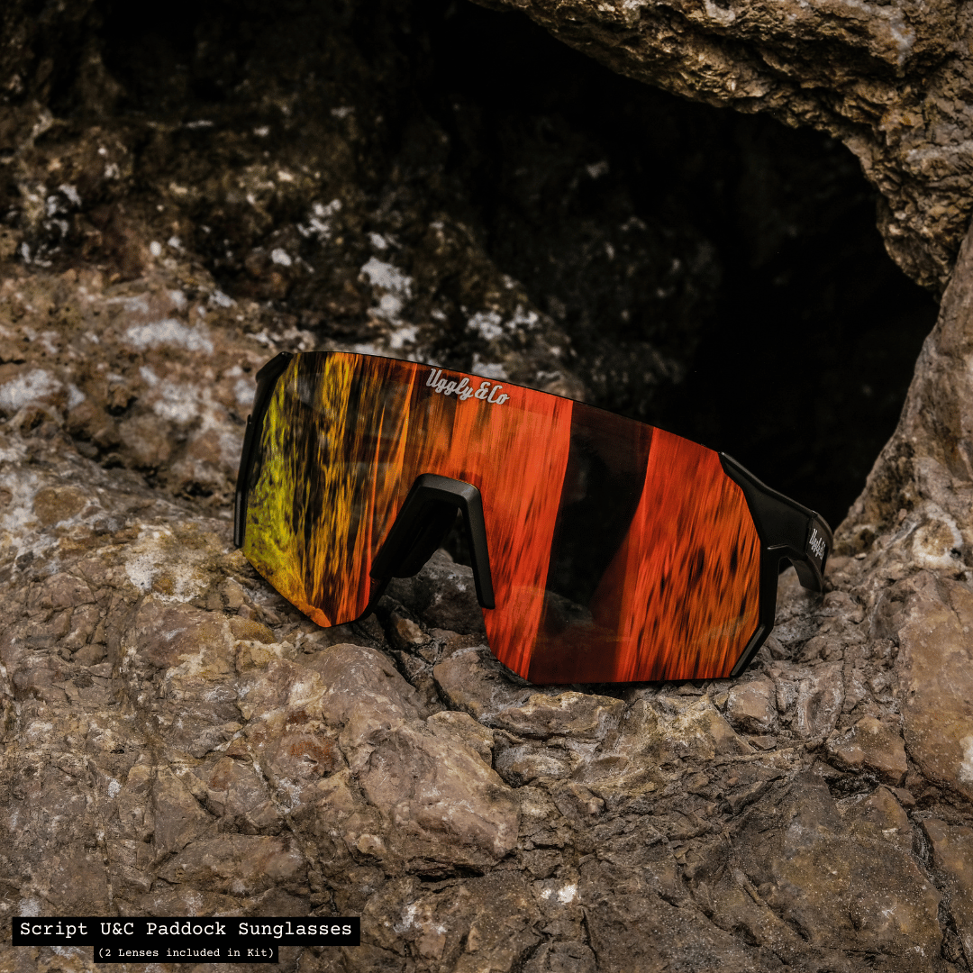 Inspired by the high-paced world of cycling and motorsport, the U&C ‘Script’ Paddock Glasses are engineered for performance — whether you're pushing pedals, racing between sessions, or just soaking up some off-duty sun. With the same streamlined silhouette as our original Paddock Shades, this version turns the dial down just a notch, offering a more understated look without losing the bold Uggly&Co edge.