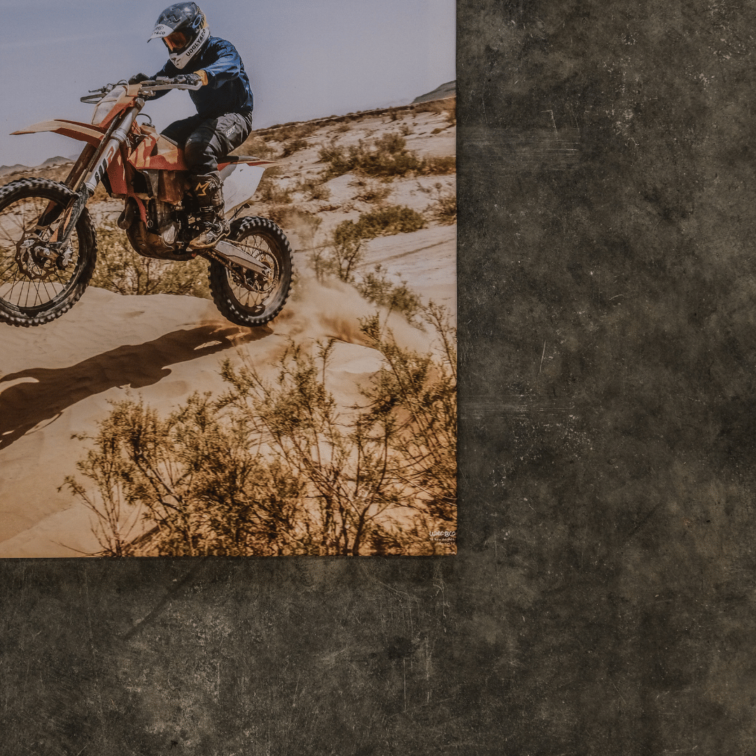 Elevate your space with "To New Heights," a dynamic canvas showcasing the exhilarating energy of motocross. This stunning image captures a rider launching their bike high above the sandy dunes of the Sahara Desert, perfectly embodying the spirit of adventure. Taken during our MX jersey collection shoot in Morocco, this striking photograph reflects our commitment to showcasing products in the most inspiring environments. It's the perfect piece for any man cave, bringing a sense of thrill and dedication to your walls.