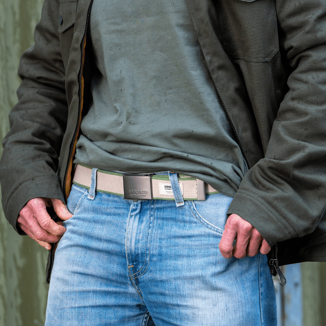 Whether in the garage, at a gig, or out on the road, the Green Canvas Utility Belt brings together workwear toughness, lifestyle functionality, and everyday versatility.