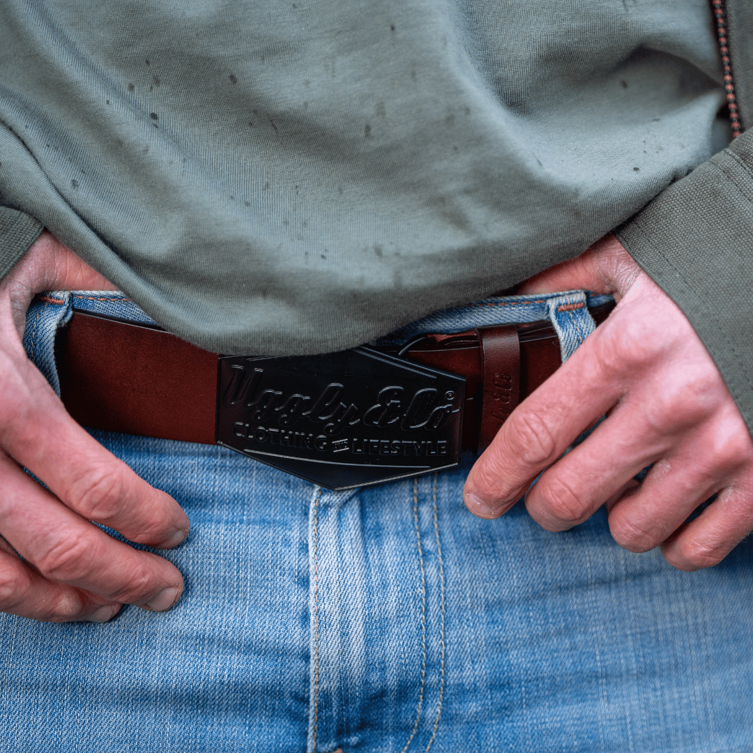 Durable and timeless, the belt features our signature Uggly&Co Diamond logo, embossed black-on-black—a design that runs through some of our most iconic ranges. Inspired by Western workwear and cowboy heritage, it’s completed with a bold oversized buckle at the front, delivering a rugged yet refined statement.