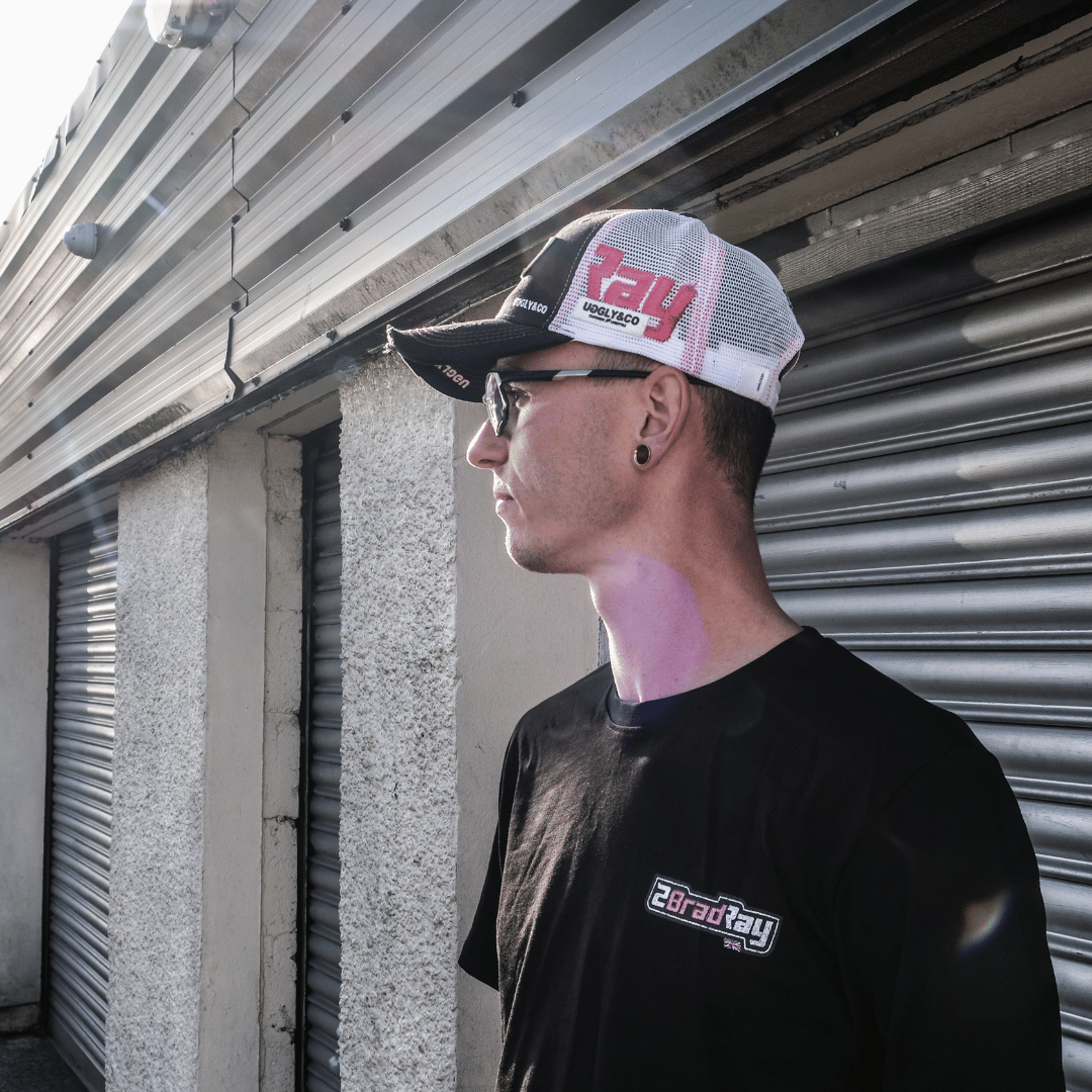 Completing the design, each side of the cap features embroidered Brad Ray logos — with 'Brad' on one side and 'Ray' on the other — tying together a cap that’s made for fans, racers, and collectors alike.