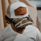 Introducing the Camo Diamond Cap, a bold fusion of rugged style and timeless design. This cap captures the essence of adventure with its distinctive camo print and weathered details, making it a standout addition to any collection.