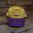 The Yellow & Purple Diamond Cap brings together bold color and motorsport style in one iconic design. Featuring a purple peak and yellow front panel, this cap is a head-turner that combines high energy with undeniable flair. The beige mesh backing adds breathability, making it as functional as it is stylish.