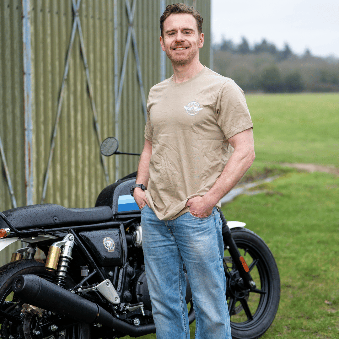 Each design is meticulously hand-sketched by our in-house artists, infusing a touch of authenticity and craftsmanship into every piece. The Circle Wings Tee stands as a tribute to the legacy of the Black Dub, a renowned corner on the Isle of Man TT course that once served as a bustling petrol station and motorcycle garage. Embrace the heritage and spirit of speed with this timeless piece that embodies the heart and soul of the legendary Black Dub.