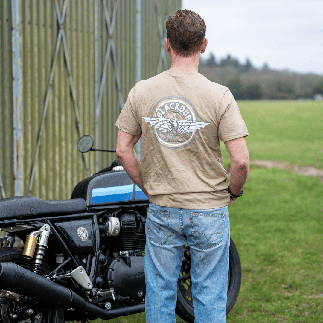 Introducing the Circle Wings Tee, a cherished design in the Black Dub collection, adorned with the empowering slogan: "Fuel your Need for Speed." This exclusive tee pays homage to the historic Black Dub petrol station and motorcycle garage. With an stone hue, this garment features a striking big print on the back, showcasing the essence of the Black Dub spirit.