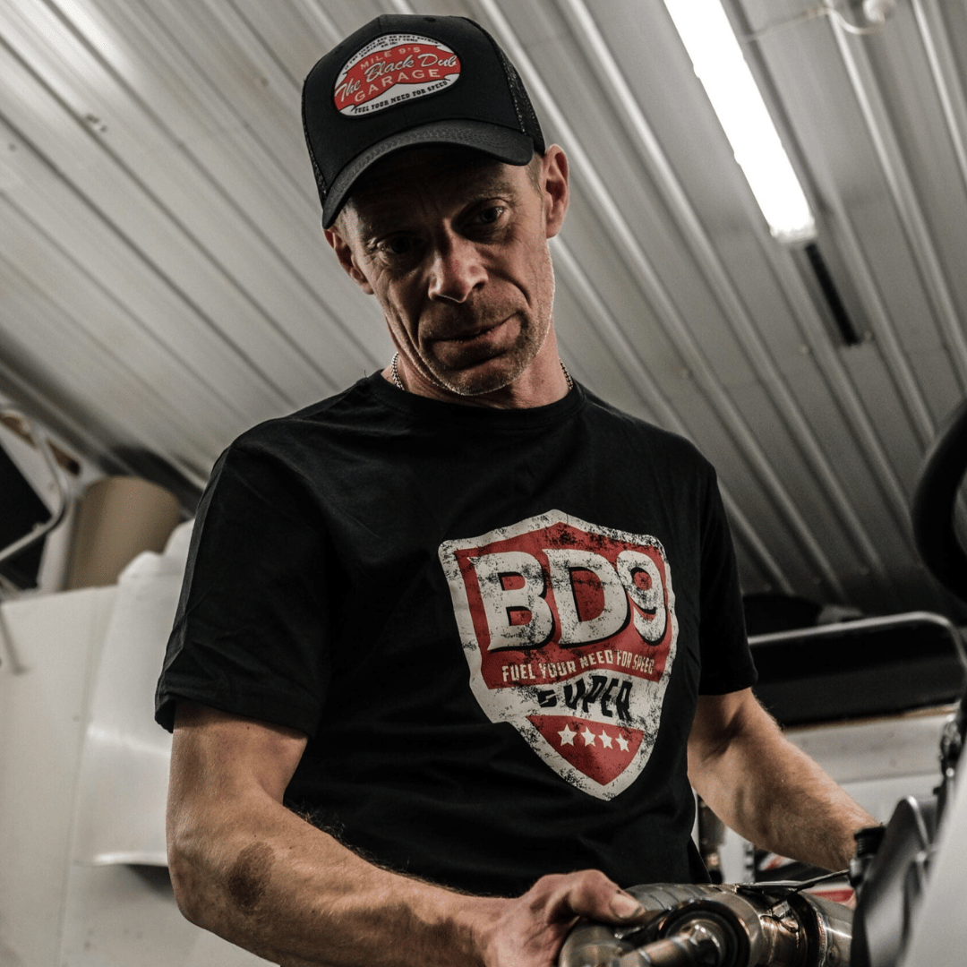 The Super Shield T-shirt, is part of The Black Dub Collection. With inspiration taken from The Black Dub, Mile 9’s roots of a Motorcycle Garage & Petrol Station situated on mile 9 of the infamous Isle of Man TT Course.
