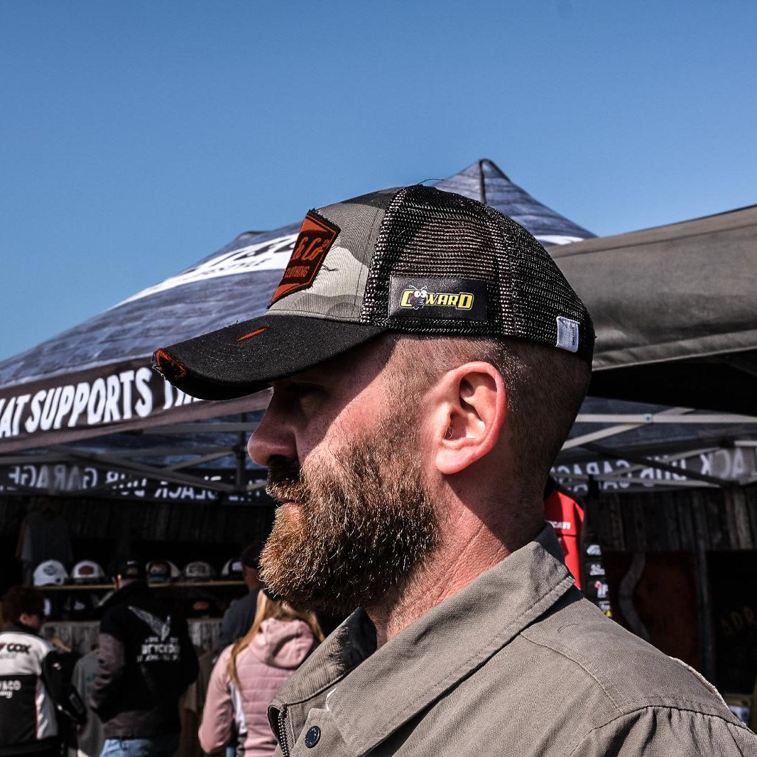 Cette casquette Flat-Track présente notre logo incontournable, ainsi qu'un design rouge et bleu inspiré de la moto vintage sur le devant de la casquette. Une superbe couleur vintage de rouge et de bleu, un classique parmi les fans de casquettes de camionneur !