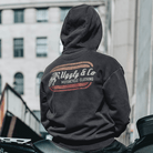 Introducing the Black Flattrack Hoodie, a tribute to vintage racing culture and handcrafted design. This hoodie is part of Flattrack Collection 1.0 (March 25'), featuring a unique, hand-sketched illustration of a flattrack rider in a signature sliding stance—drawn from historic race photographs to capture the raw energy of the sport.