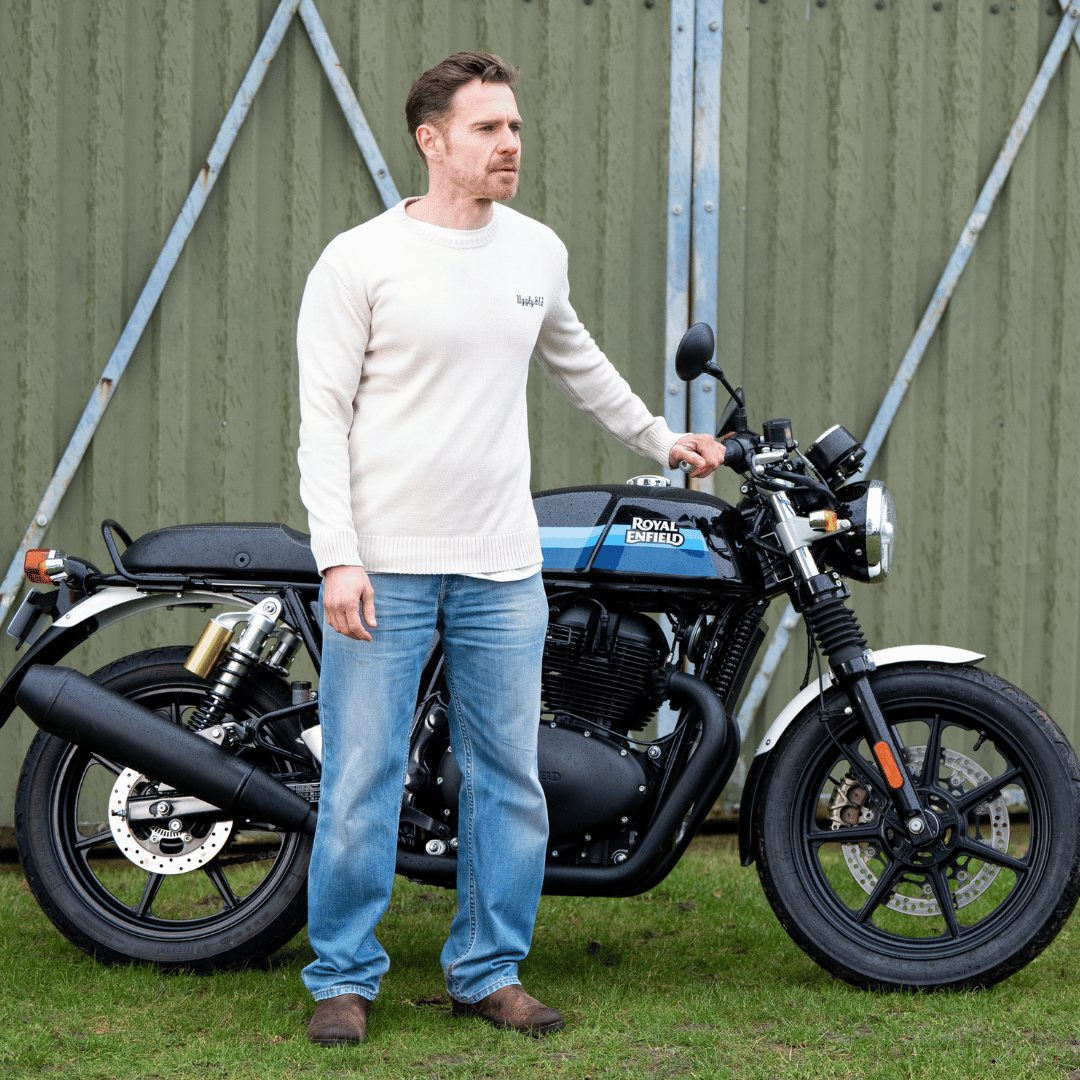 Made from heavyweight cotton and finished with a soft vintage wash, the fabric has a naturally aged look and a comfortable, lived-in feel from day one. The thick ribbed cuffs and neckline are inspired by classic workwear knits — giving the jumper structure, shape, and that utility feel we’re known for.