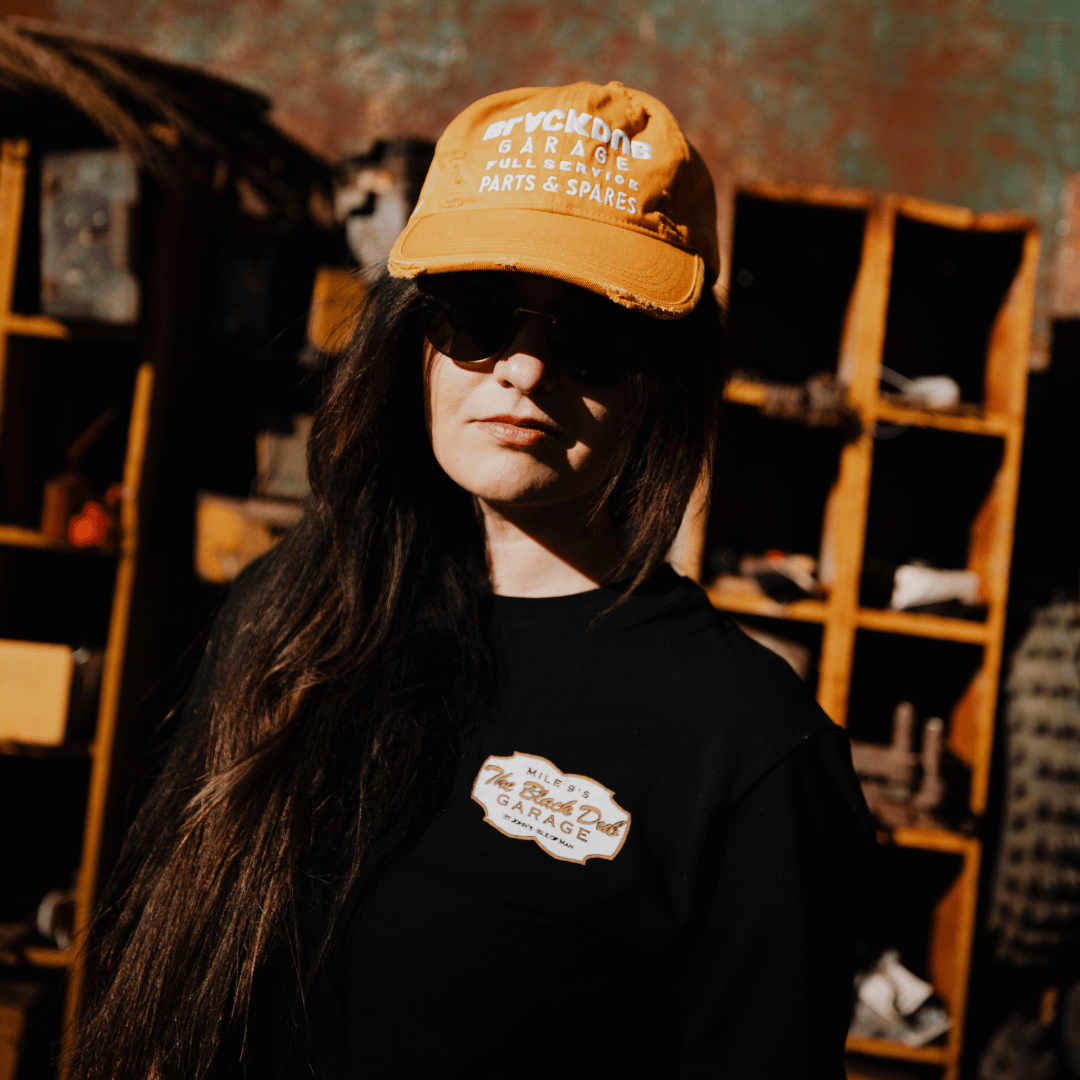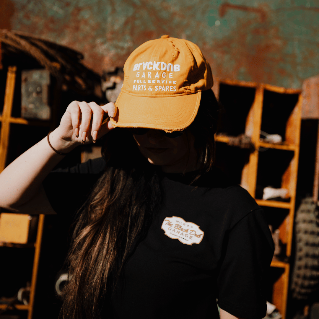 Cette casquette de garage arbore le logo du garage The Black Dub, dans son rouge reconnaissable. Monté sur une casquette bleu menthe poivrée et beige. Cette casquette s'est inspirée de la camionnette Chevy C10 des Dubs avec sa peinture menthe poivrée et beige. Une machine vraiment unique et géniale avec un capuchon tout aussi unique et génial !