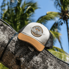 The Circle Wings Cap, features The Black Dub spark plug design, on the front of the cap in a standout Brown & Black. Fitted on a Brown, Off white & Black Cap. The front design features The Black Dub’s saying: “Fuel your need for Speed” – A homage to the history of The Black Dub, Petrol Station & Garage.