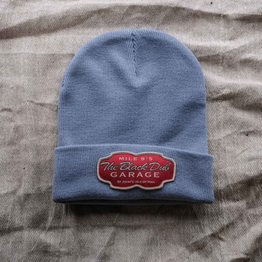 The Black Dub Garage Beanie captures the spirit of the Isle of Man TT with a clean, classic design. Crafted in a soft light blue knit, it features the iconic Black Dub Garage patch in vintage red and white — a nod to the legendary Mile 9 garage in St. John’s, Isle of Man. It’s a timeless piece built for riders, fans, and anyone who appreciates the heritage and grit of The Black Dub.